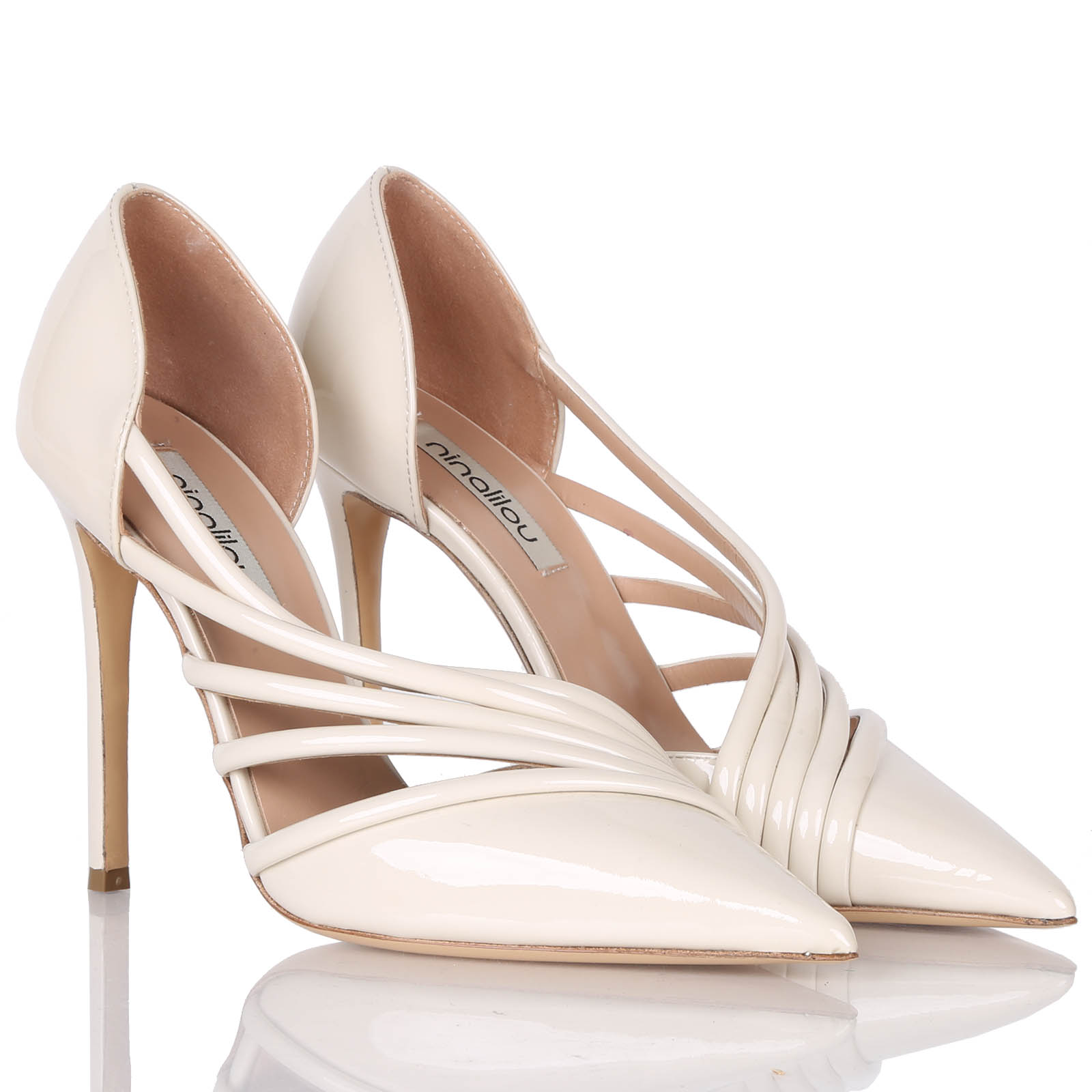 High heel point toe in patent. Leather sole. Heel height: 10,5 cm.