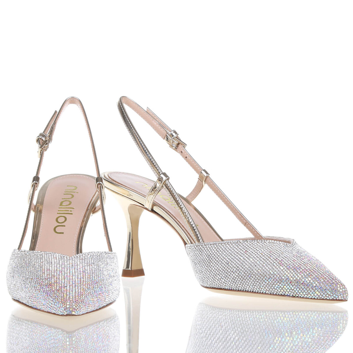 This Ninalilou slingback is a true jewel to wear. Entirely covered in shimmering rhinestones, it catches the light with every step, creating a sparkling and sophisticated effect. The slim mirrored-finish strap ensures a perfect fit and elegantly highlights the ankle. The spool heel adds a glamorous, contemporary touch while maintaining ideal comfort. Perfect for ceremonies, evening events, or special occasions, it's the ideal shoe for those who want to shine with style and elegance.