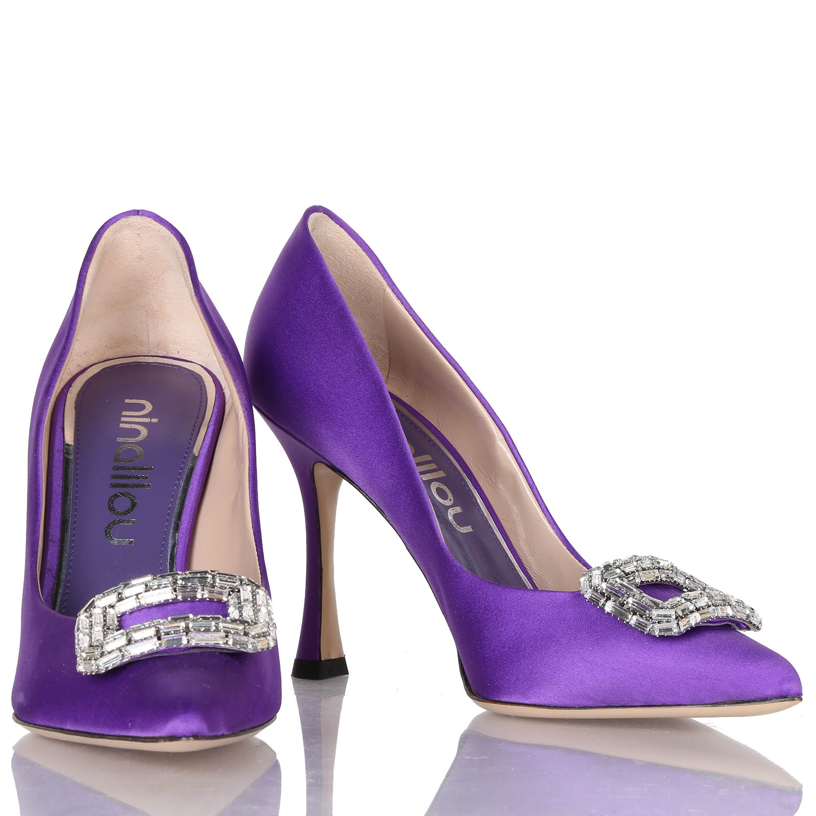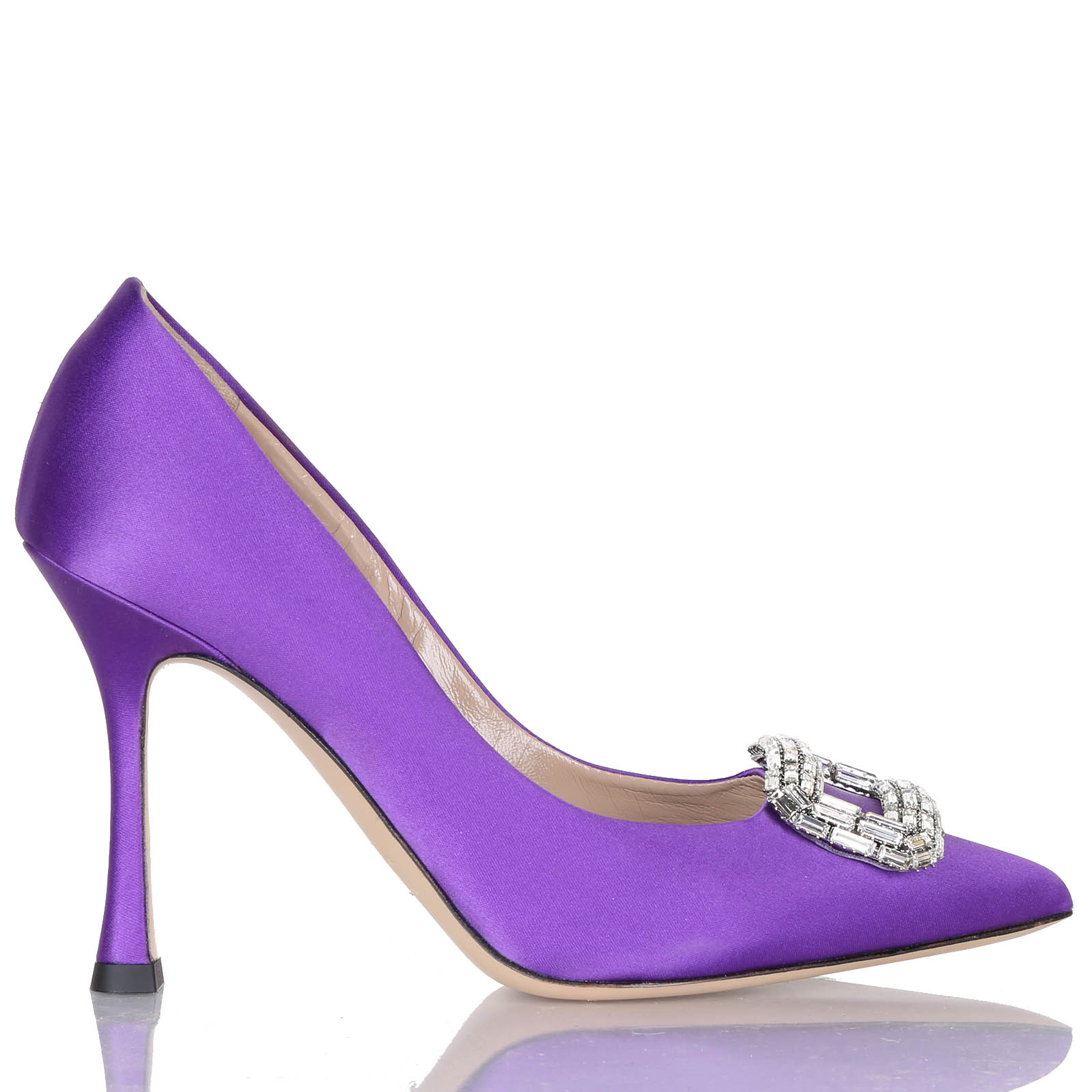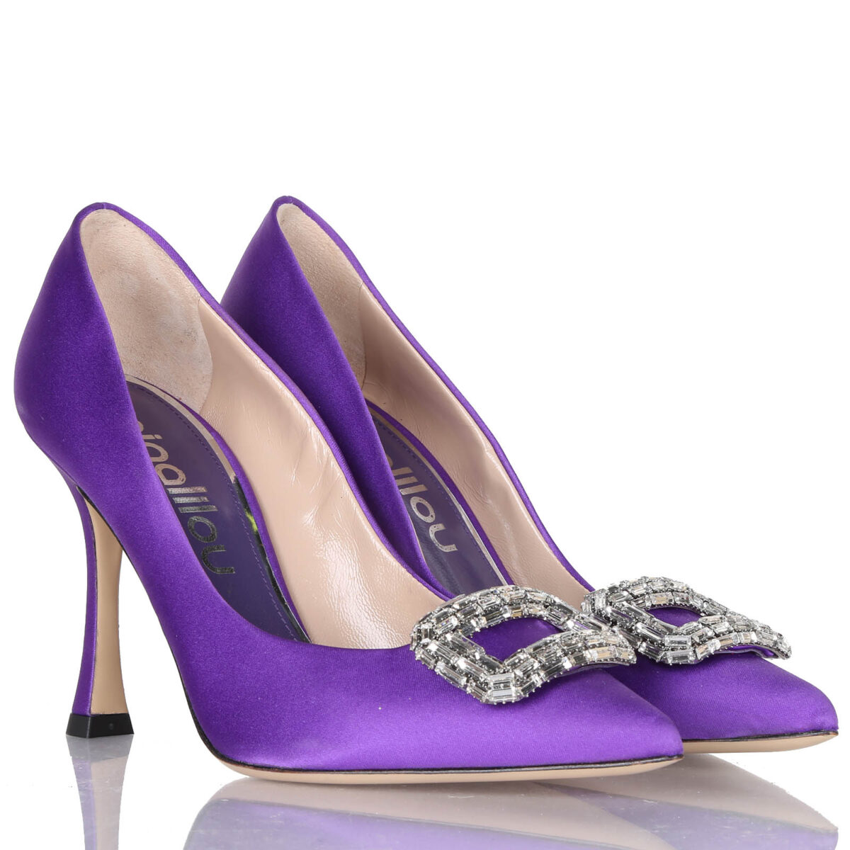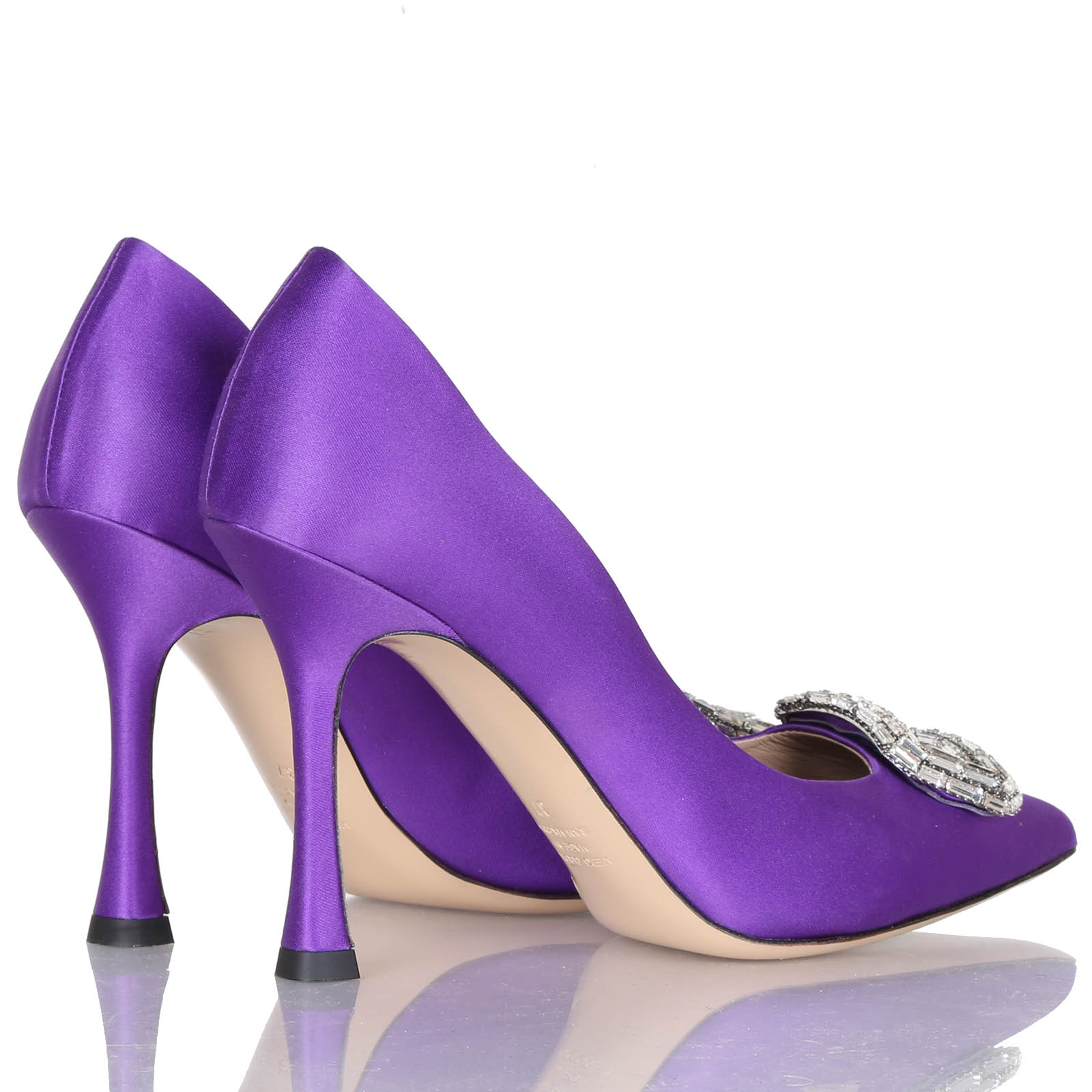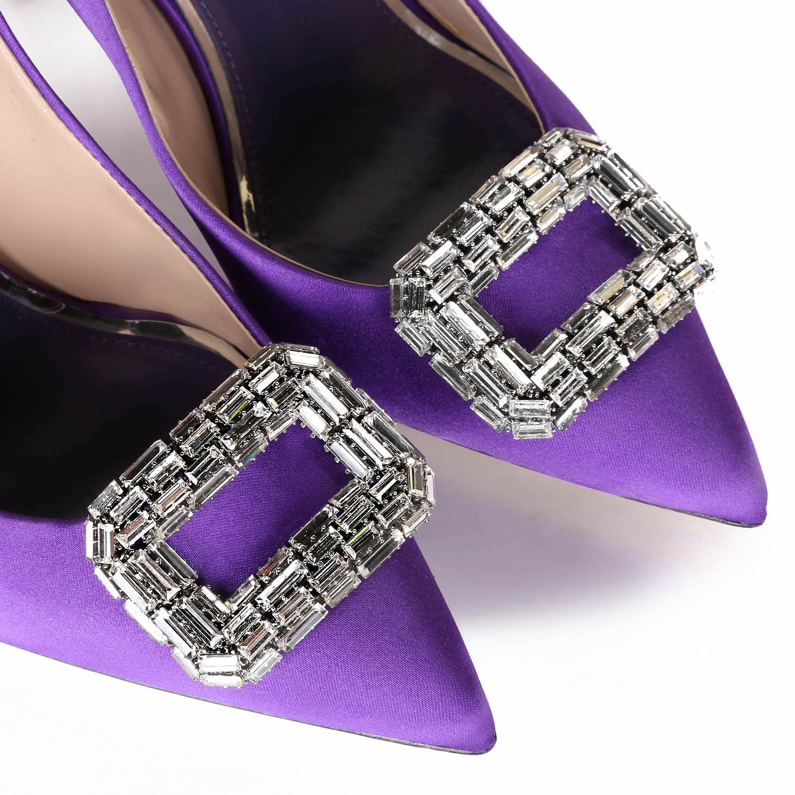 High heel point toe in fabric with tip fashion accessory. Leather sole. Heel height: 9,5 cm.