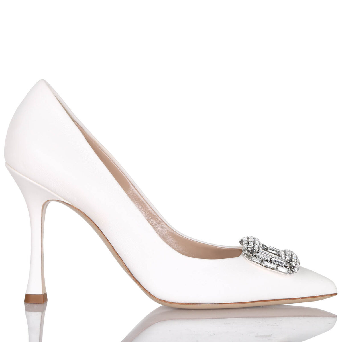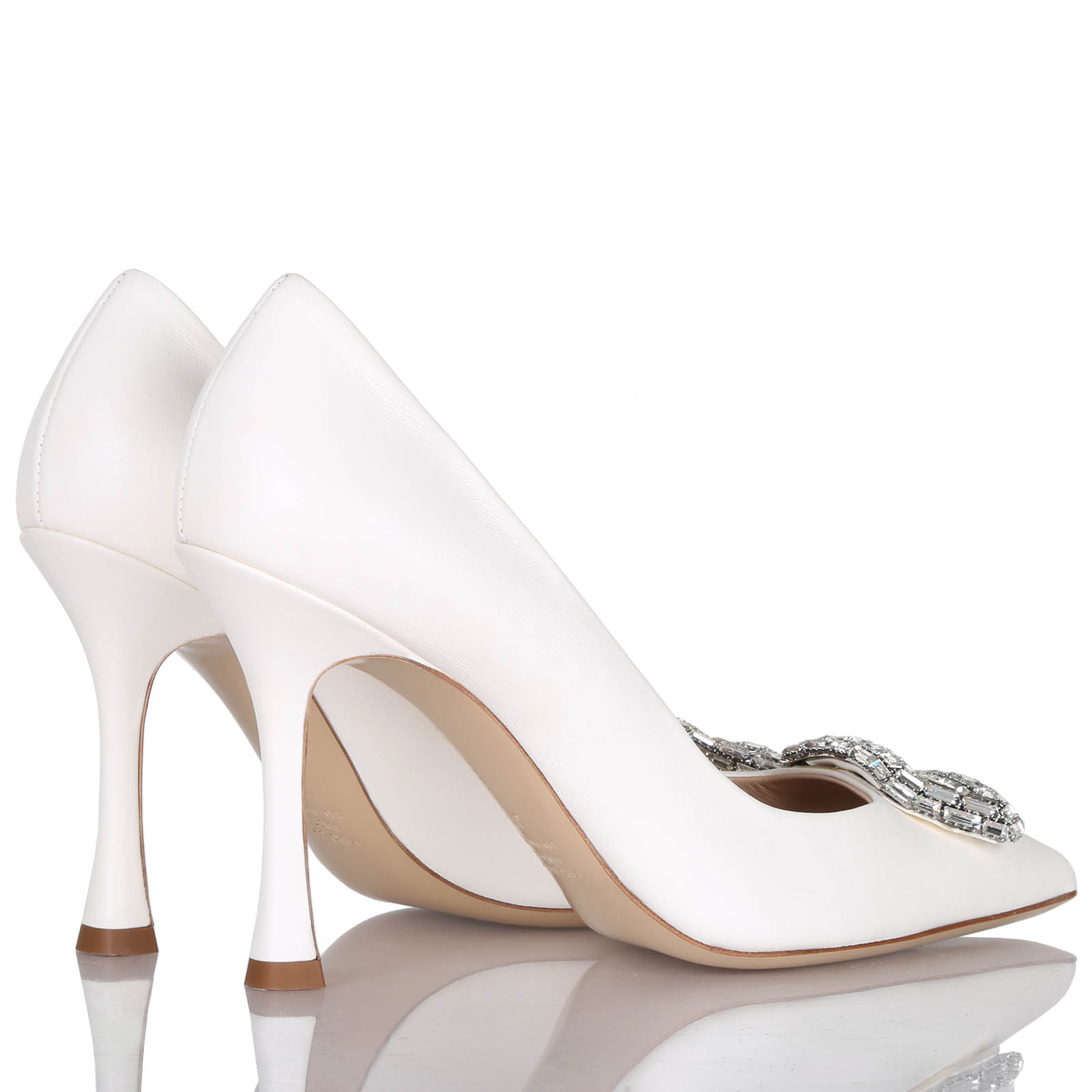 High heel point toe in soft nappa leather with tip fashion accessory. Leather sole. Heel height: 9,5 cm.