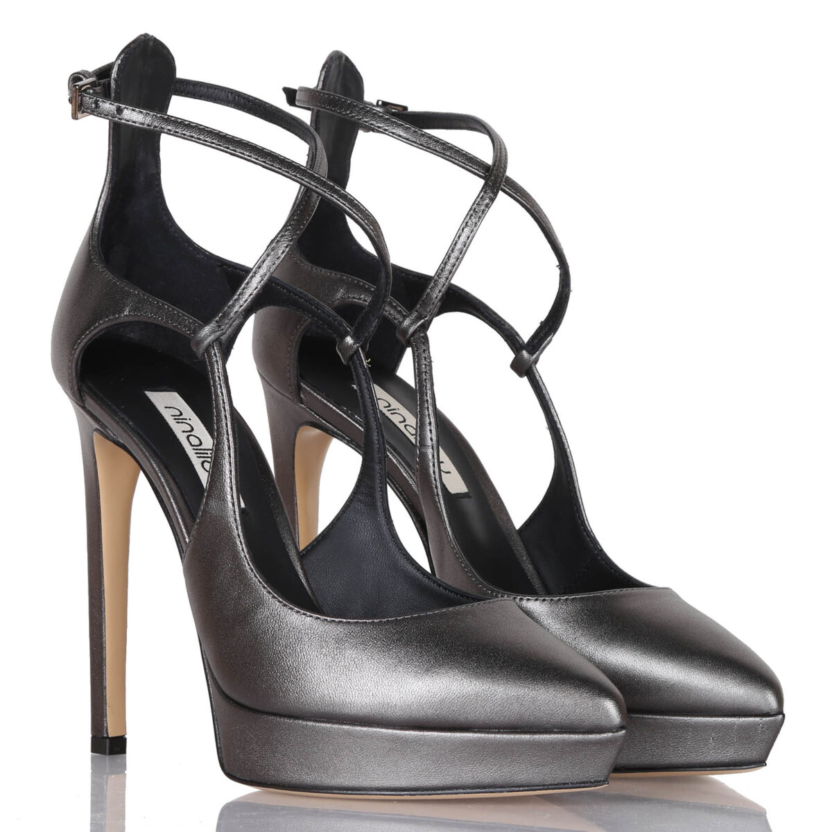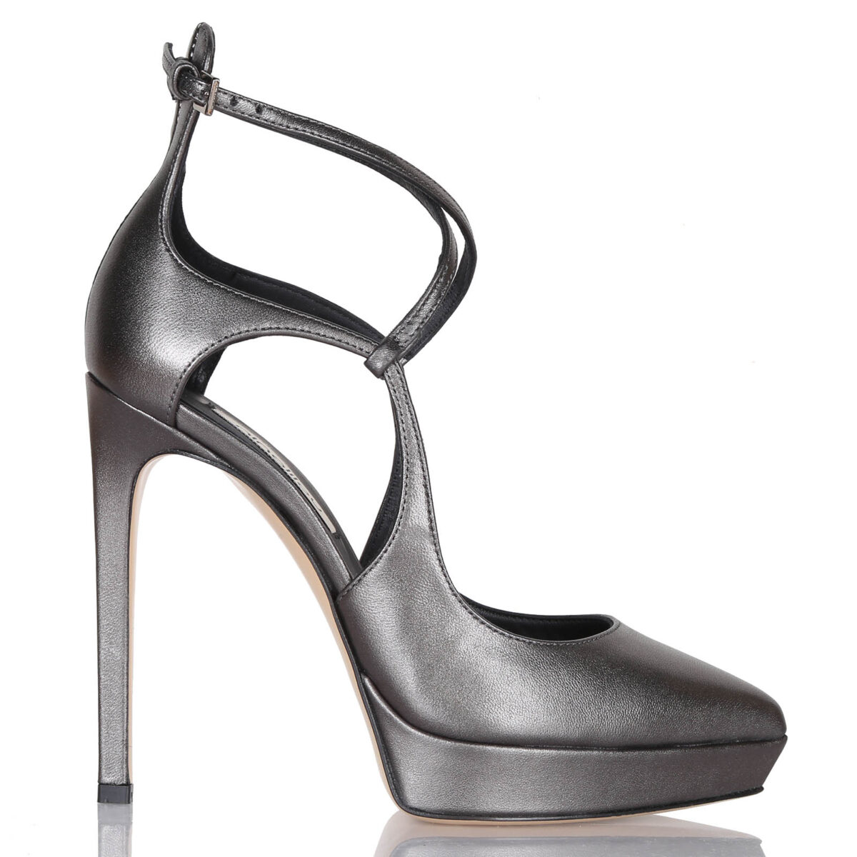 High heel point toe in laminated nappa leather. Leather sole. Heel height: 12,5 cm with platform 2,5 cm.