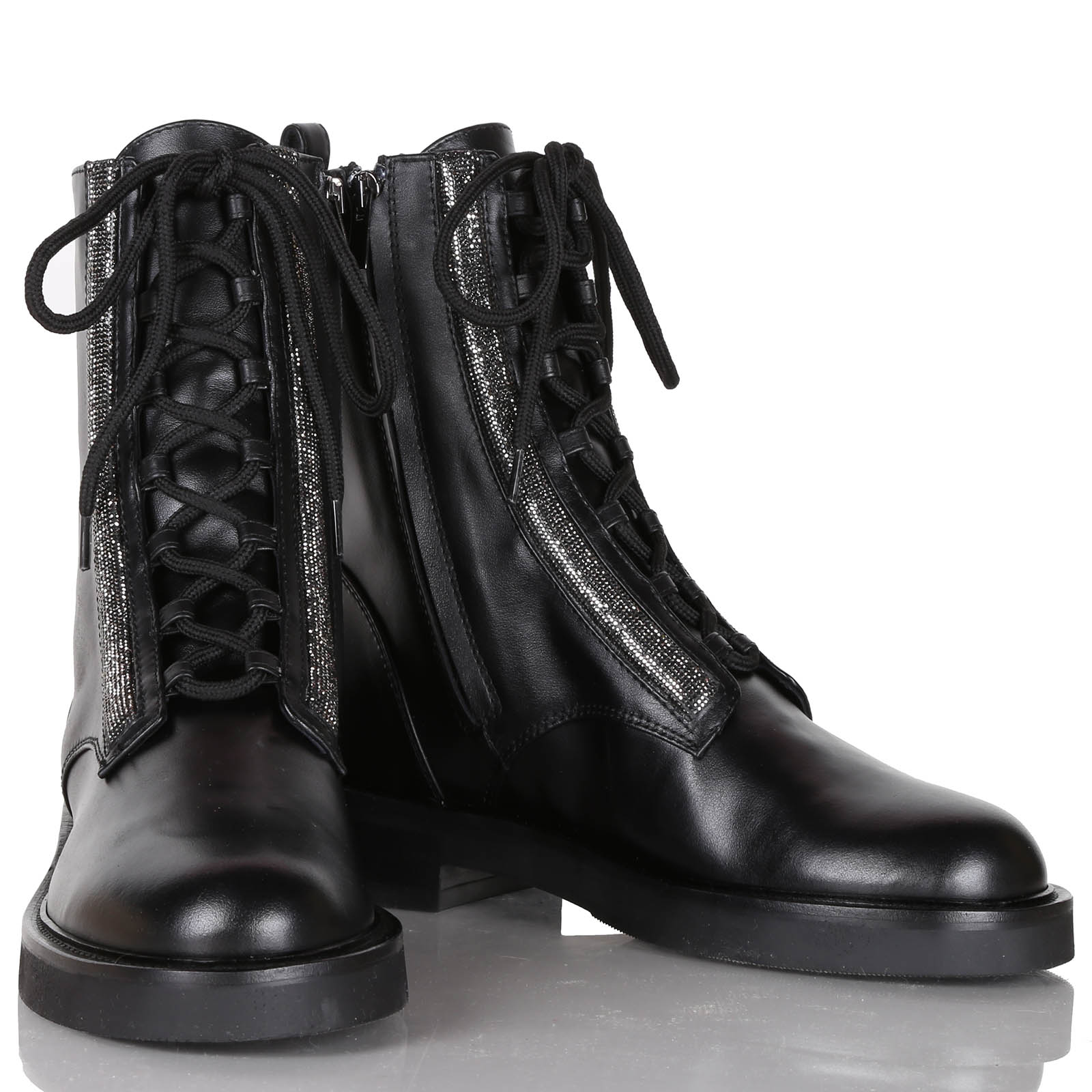 STIVALETTO BASSO IN PELLE ARRICCHITO CON STRASS E ZIP LATERALE. SUOLA IN GOMMA. TACCO 3 CM.