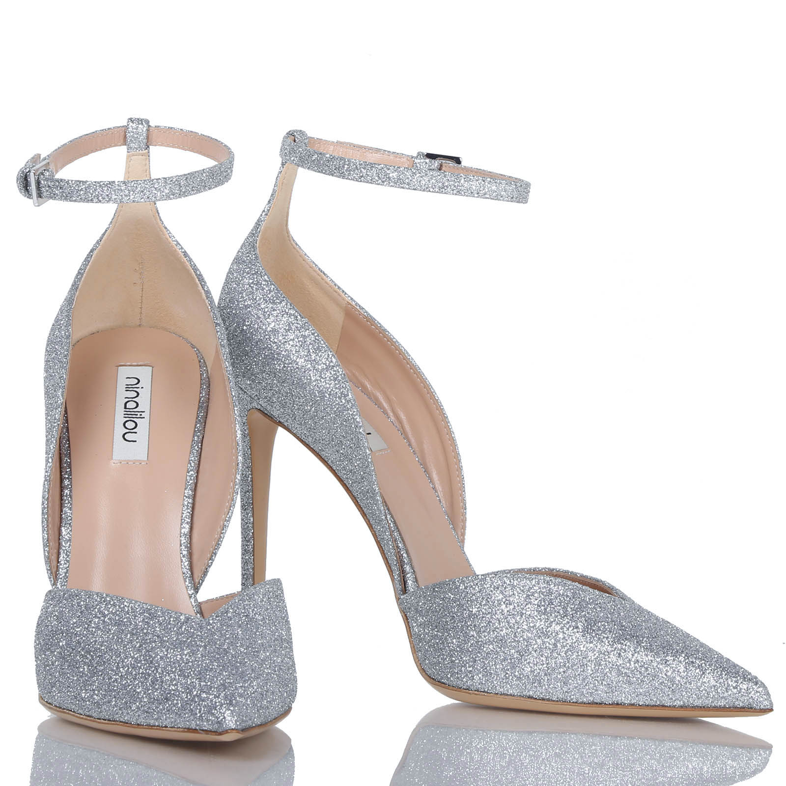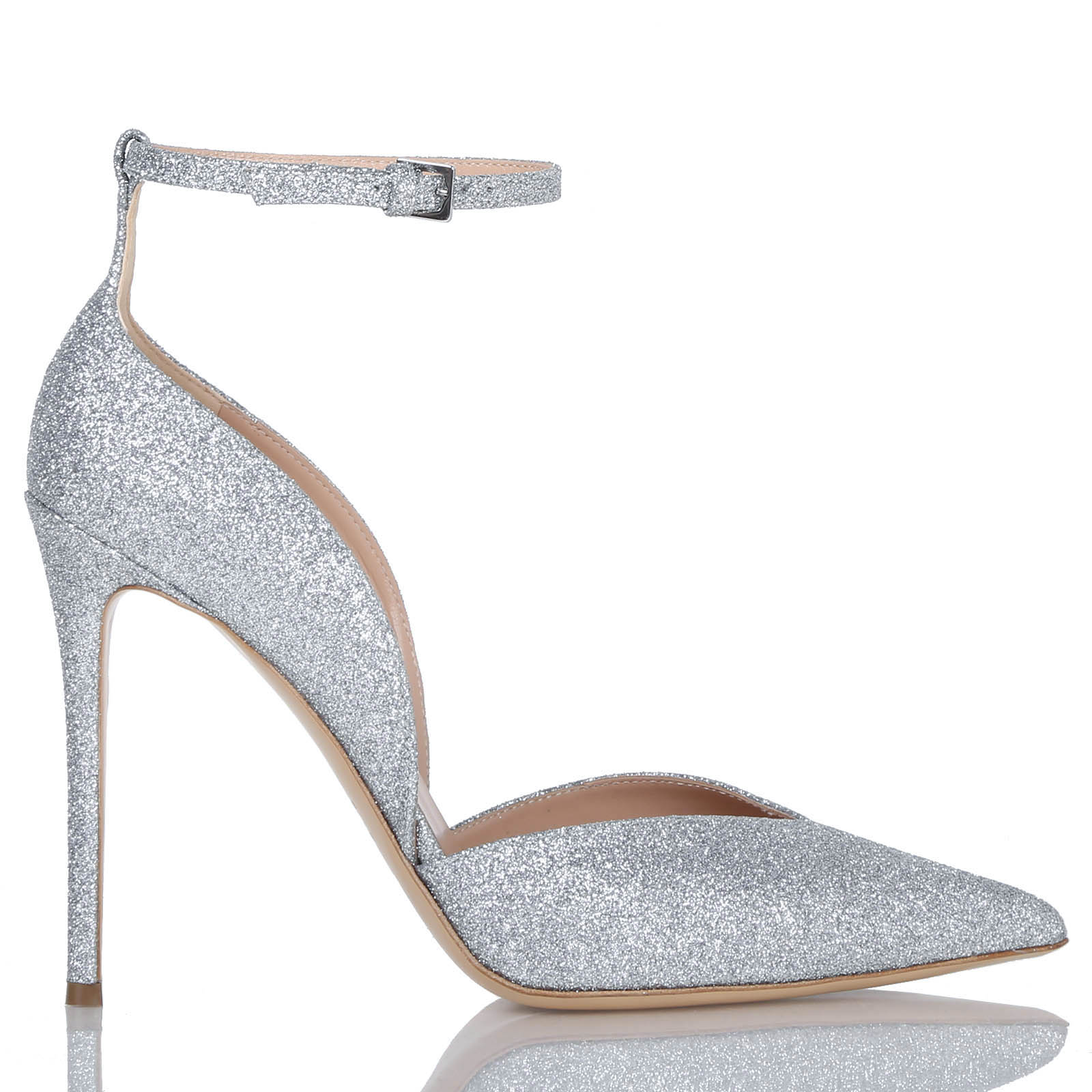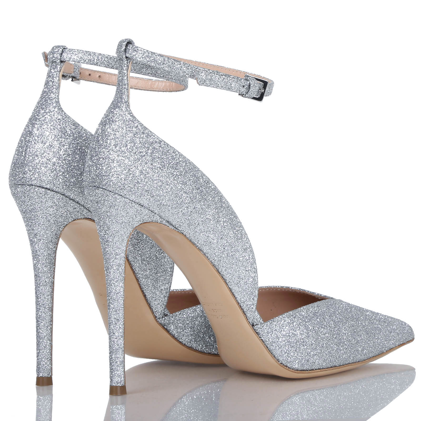 DÉCOLLETÉ  IN GLITTER CON CINTURINO ALLA CAVIGLIA. SUOLA IN CUOIO. TACCO 10,5 CM.