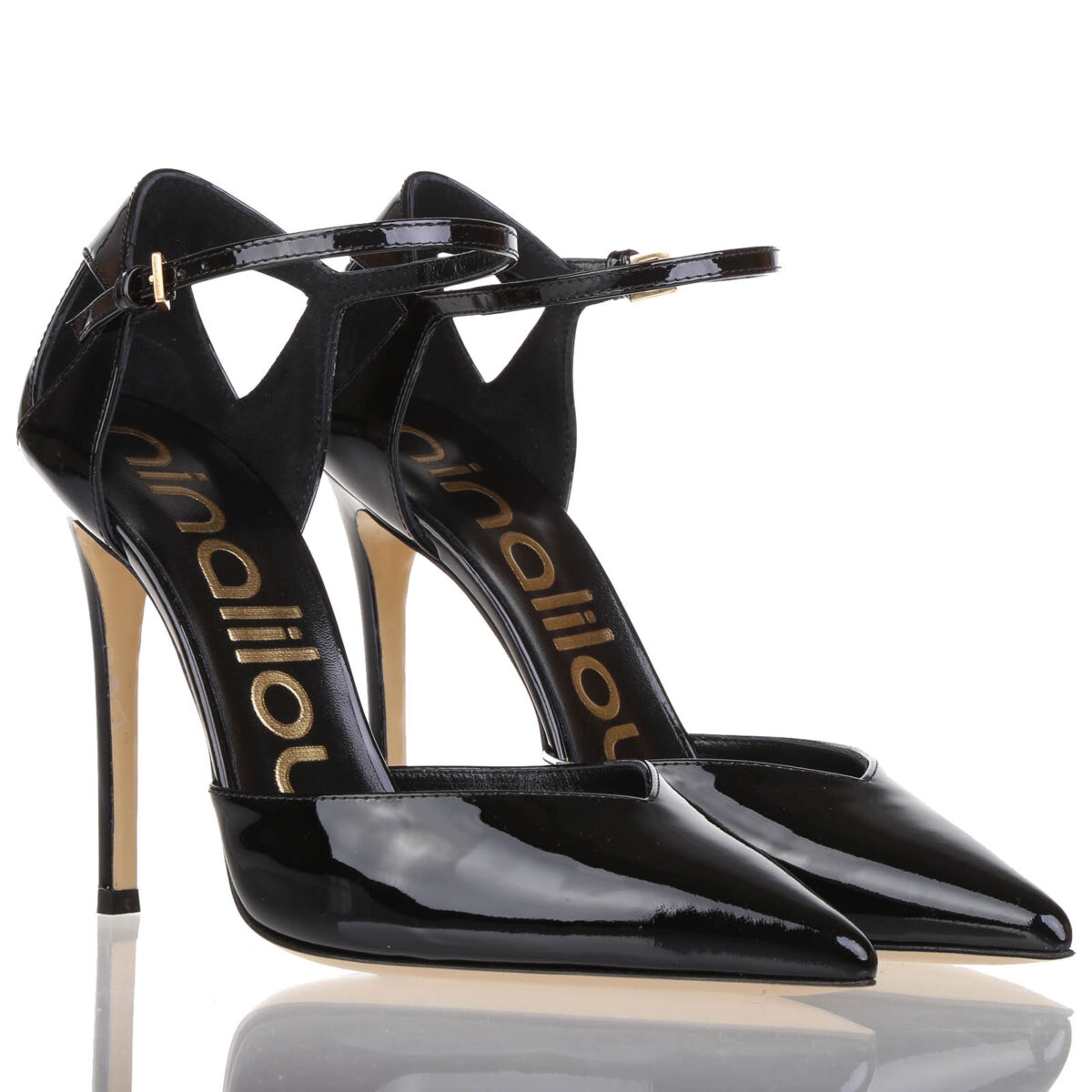 Decollete' in vernice con cinturino alla caviglia. Suola in cuoio. Tacco 10,5 cm.