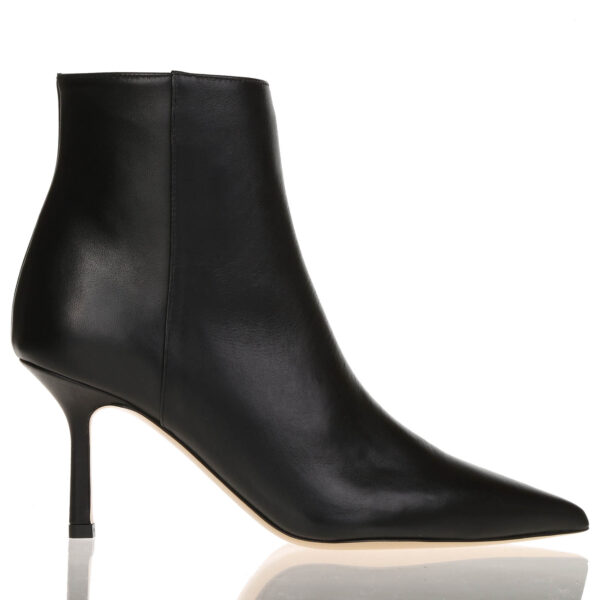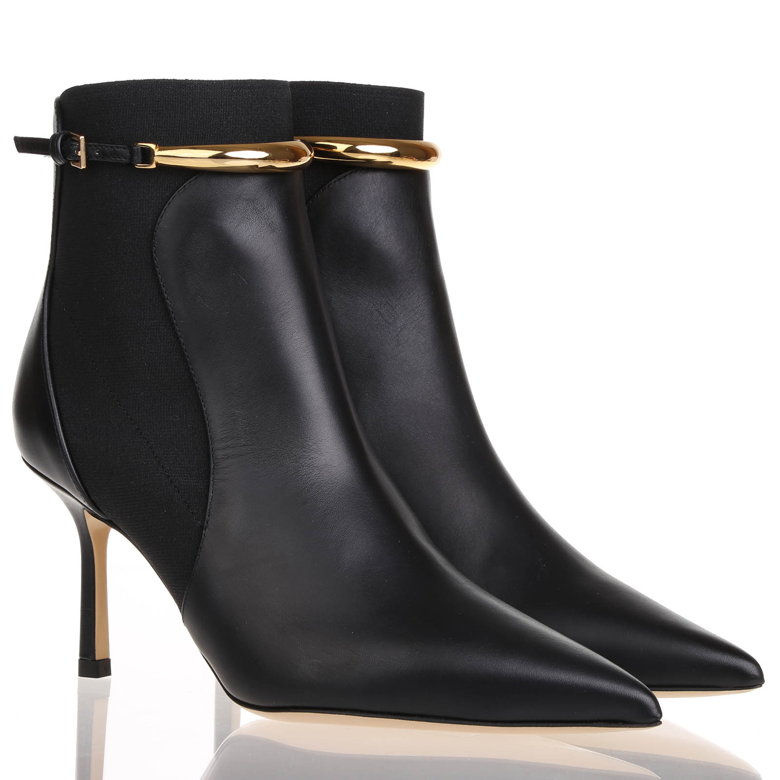 Stivaletto a punta in nappa con gambale elasticizzato e accessorio alla caviglia. Altezza gambale 12 cm. Suola in cuoio, tacco 7,5 cm.