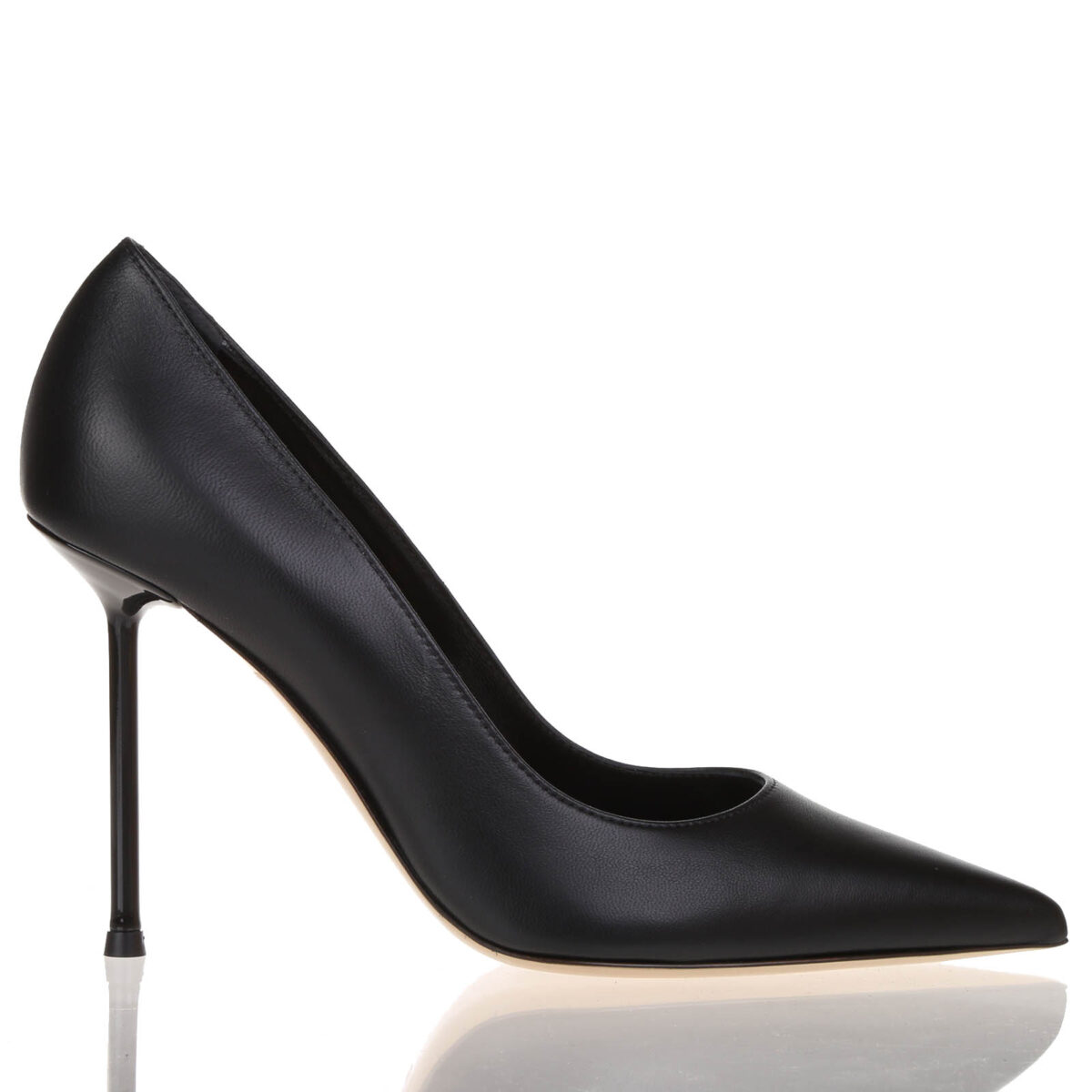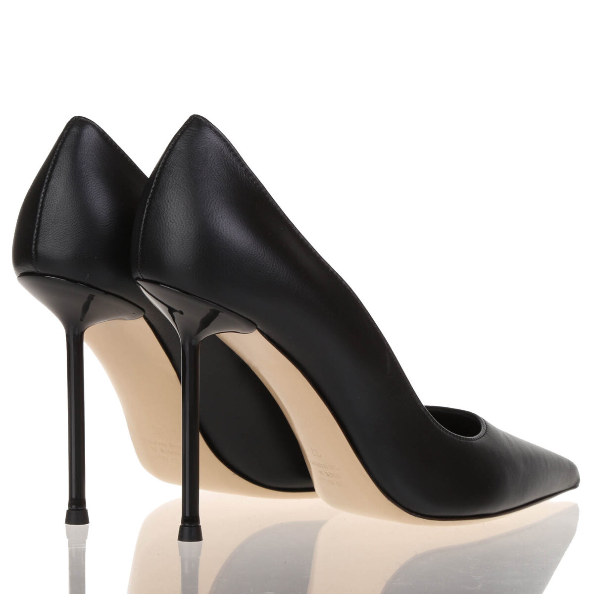 Decollete' in nappa. Suola in cuoio. Tacco laccato 10,5 cm.