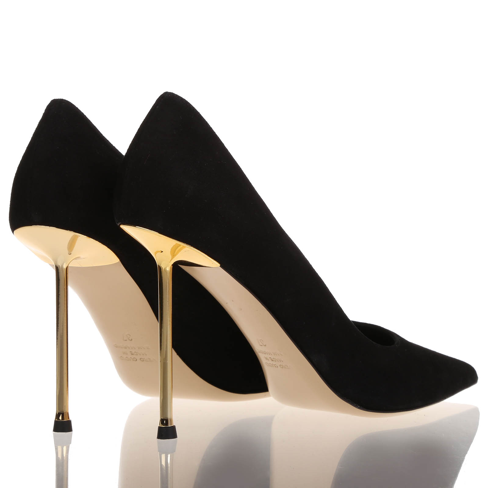 L’eleganza senza tempo si unisce al fascino audace nella decollete' Helen. Realizzata in morbido camoscio nero, con un elegante tacco cromato a stiletto slanciato, questa calzatura aggiunge un tocco di lusso e raffinatezza a ogni passo. Perfetta per chi cerca stile e sicurezza in ogni occasione.