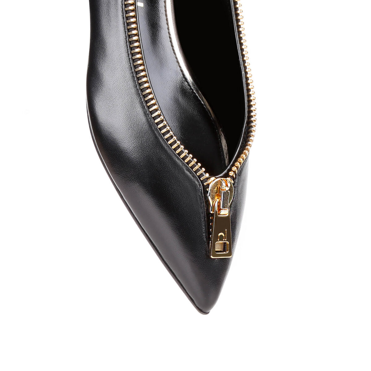 Questa ballerina unisce un design semplice a dettagli moderni. La finitura in nappa è impreziosita dalla zip dorata, aggiungendo un tocco di originalità. Perfetta per chi cerca uno stile essenziale ma sofisticato, ideale per completare qualsiasi outfit con eleganza.