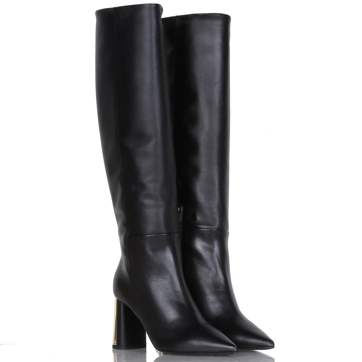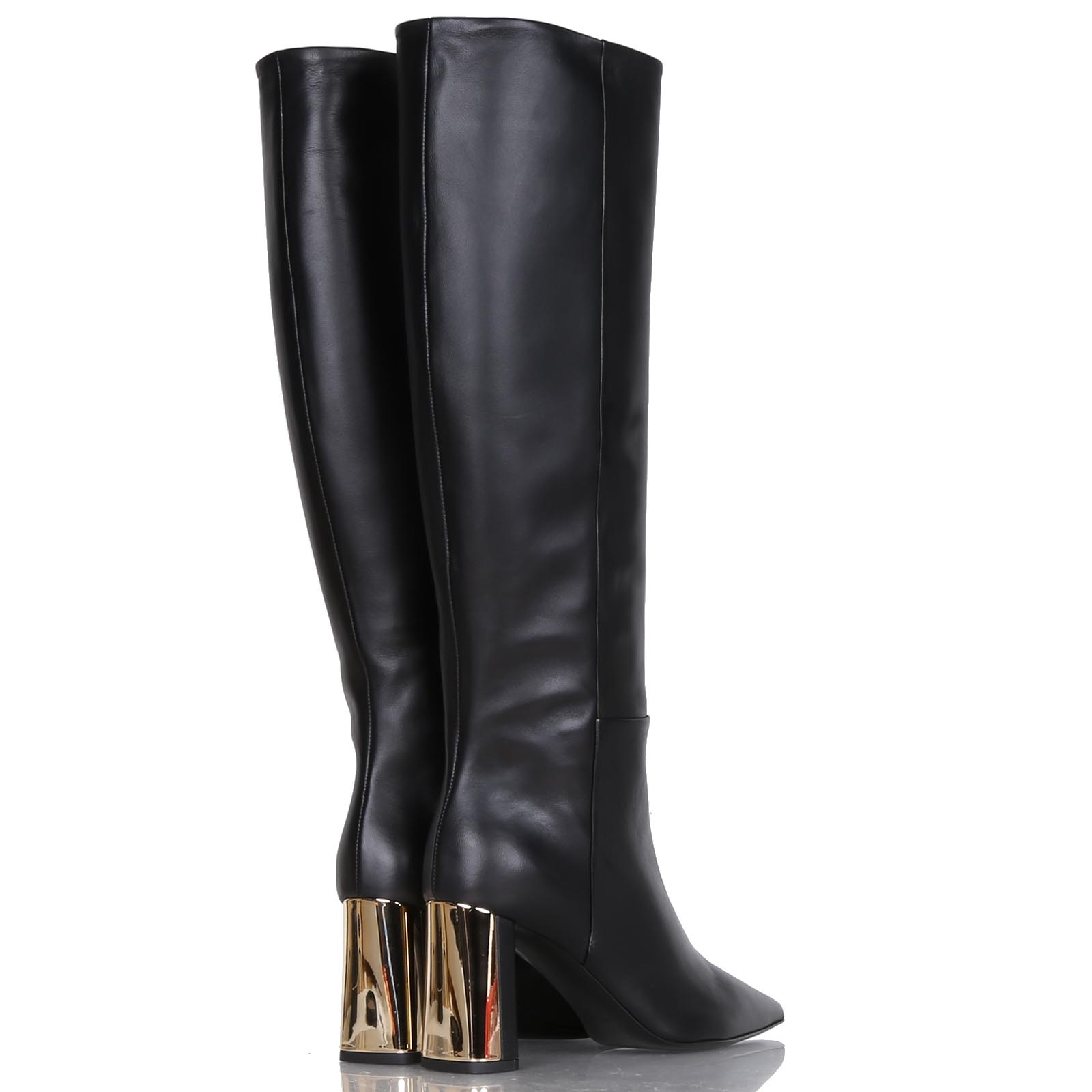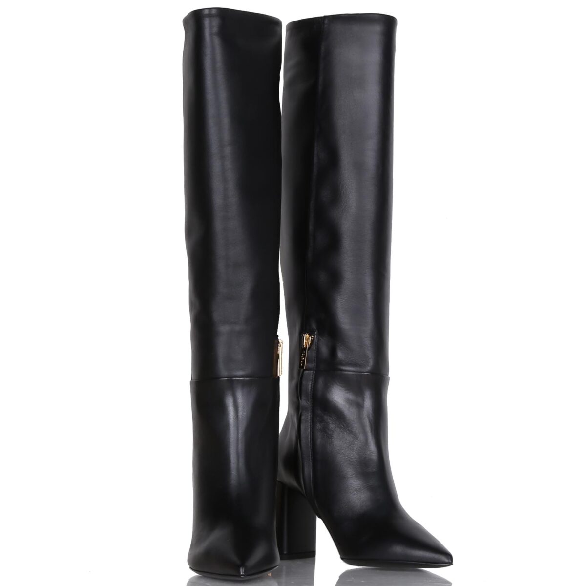 STIVALE ALTO IN MORBIDA PELLE CON ZIP LATERALE. SUOLA IN CUOIO. TACCO 9 CM