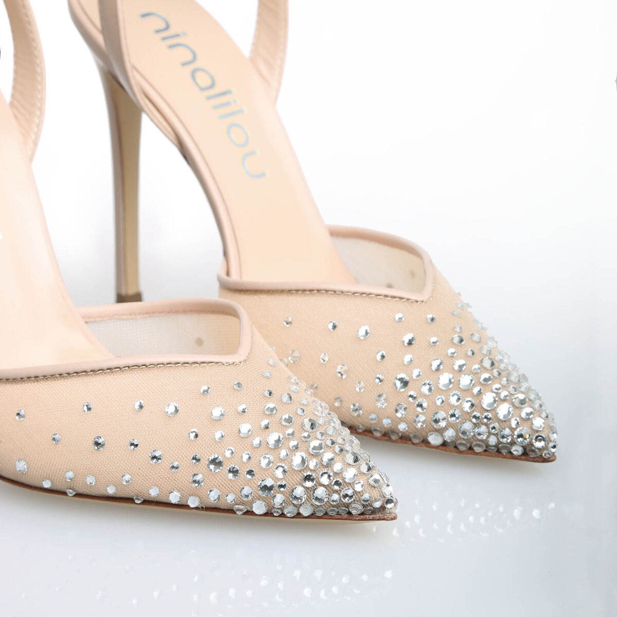 Eleganza senza tempo per la sposa moderna: questo sandalo Ninalilou unisce raffinatezza e luminosità con cristalli scintillanti e un design slanciato che celebra la femminilità in ogni passo.