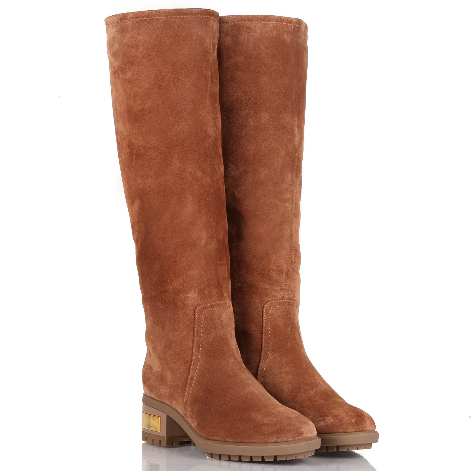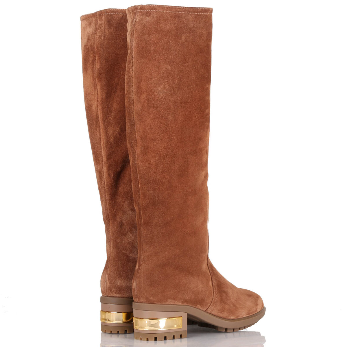 Stivale in crosta con zip laterale. Fodera interna in pelo. Suola in gomma con inserto cromato nel tacco. Tacco 5 cm.