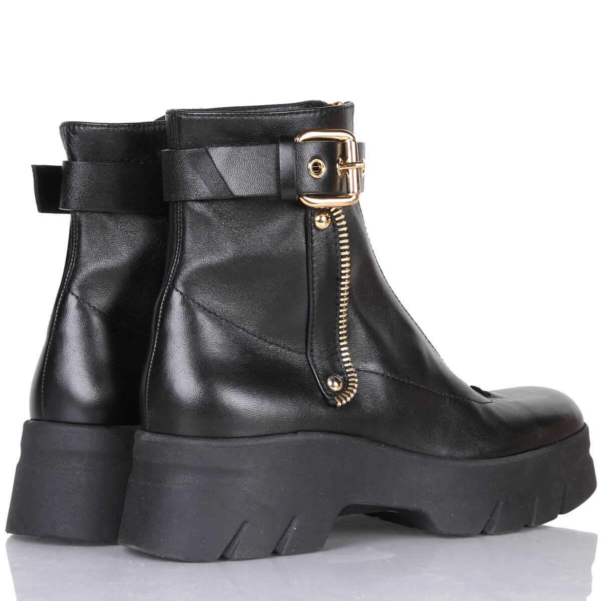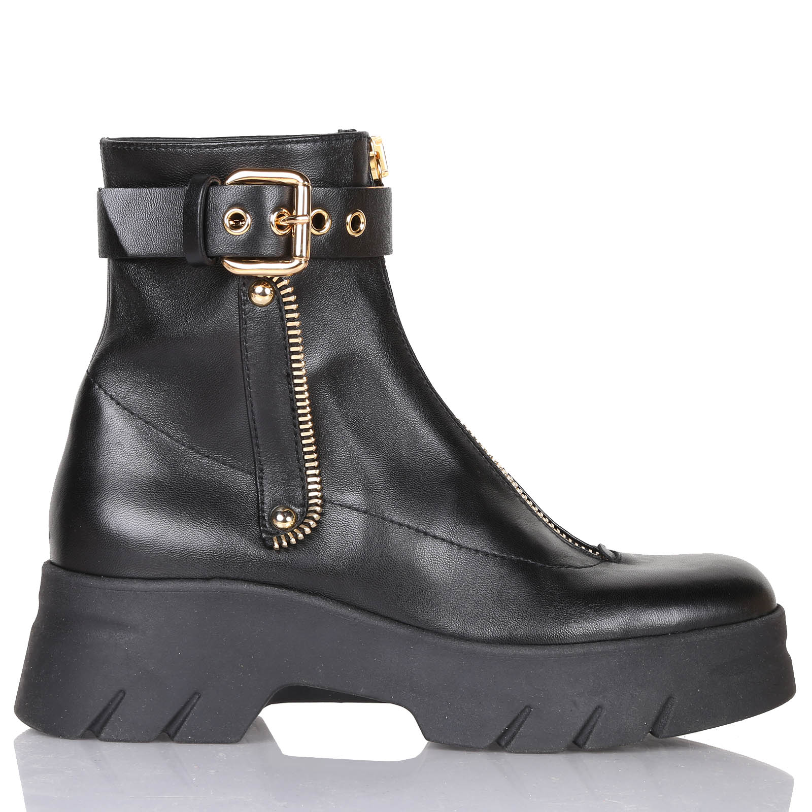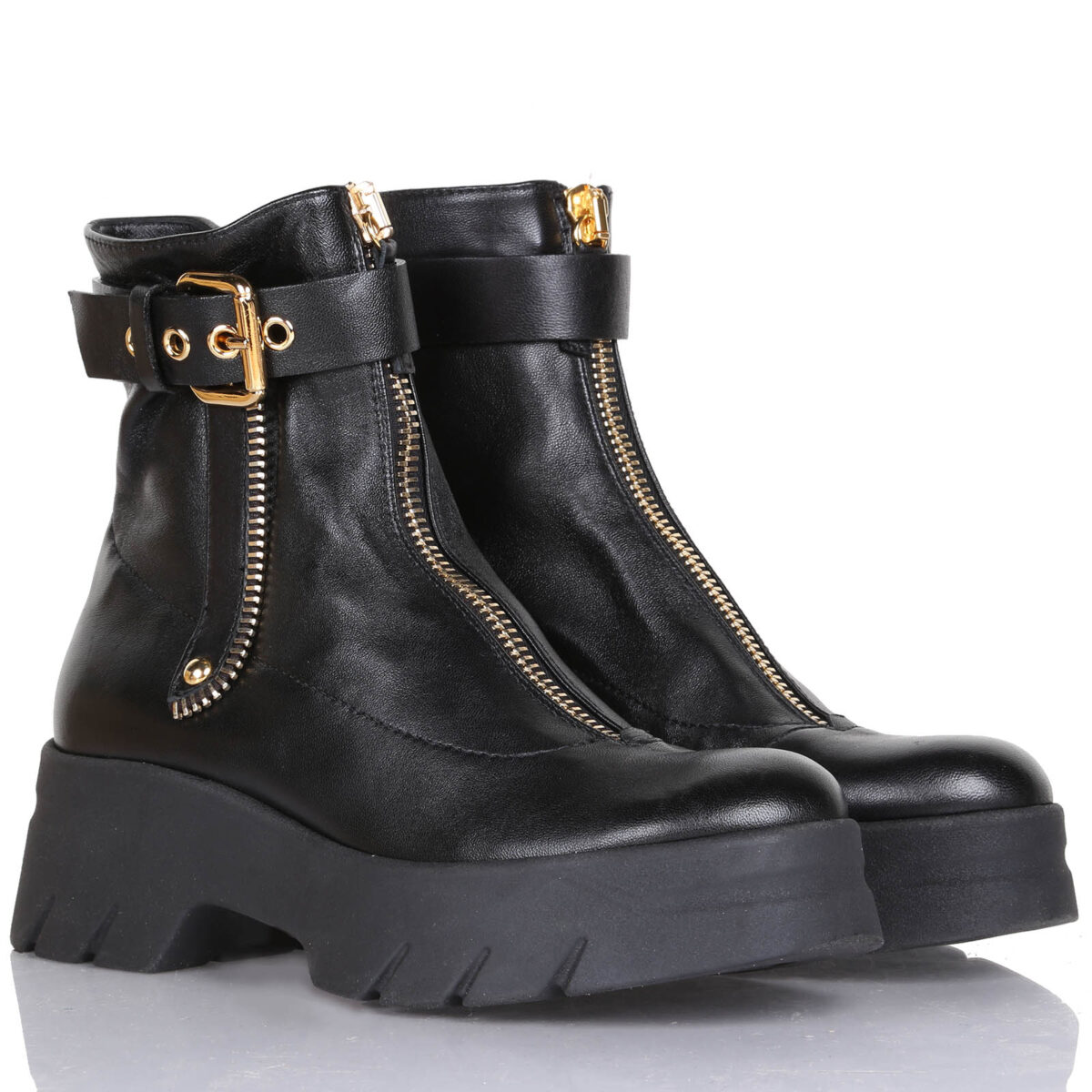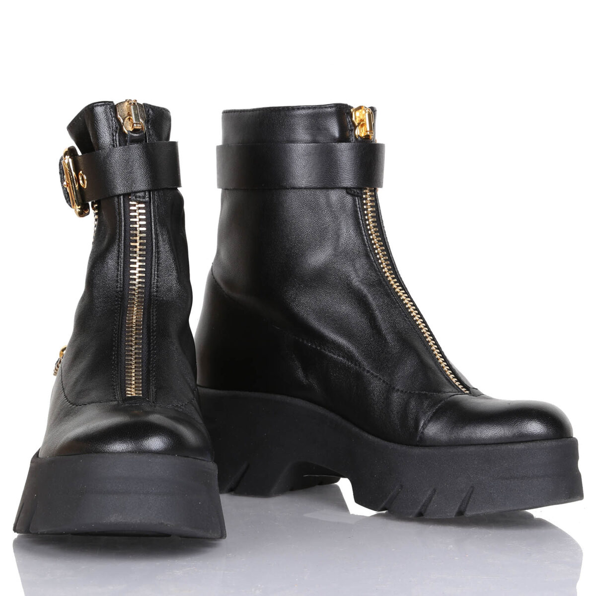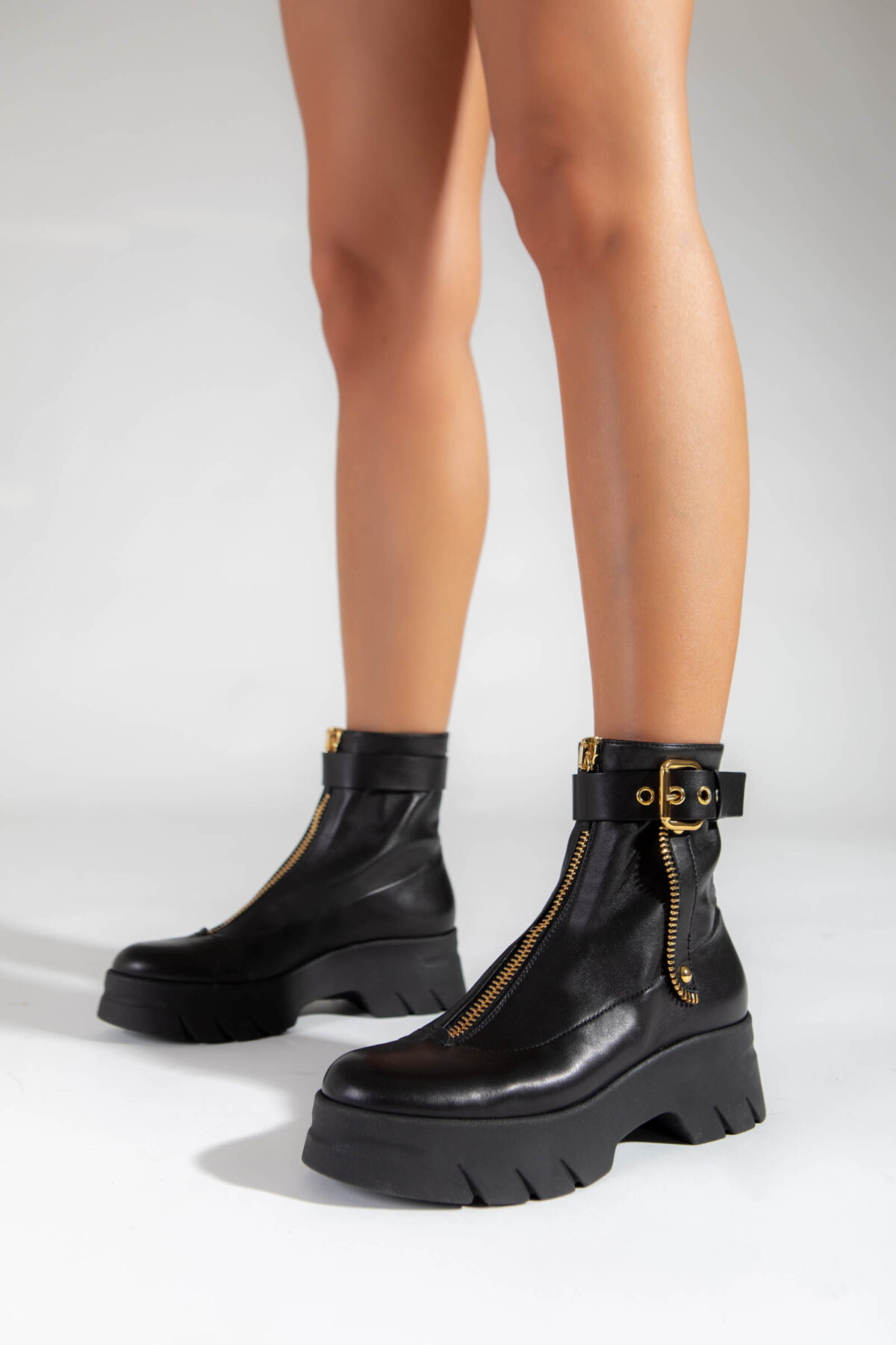 Stivaletto basso in pelle con zip sul collo del piede. Suola in gomma. Tacco 5 cm.