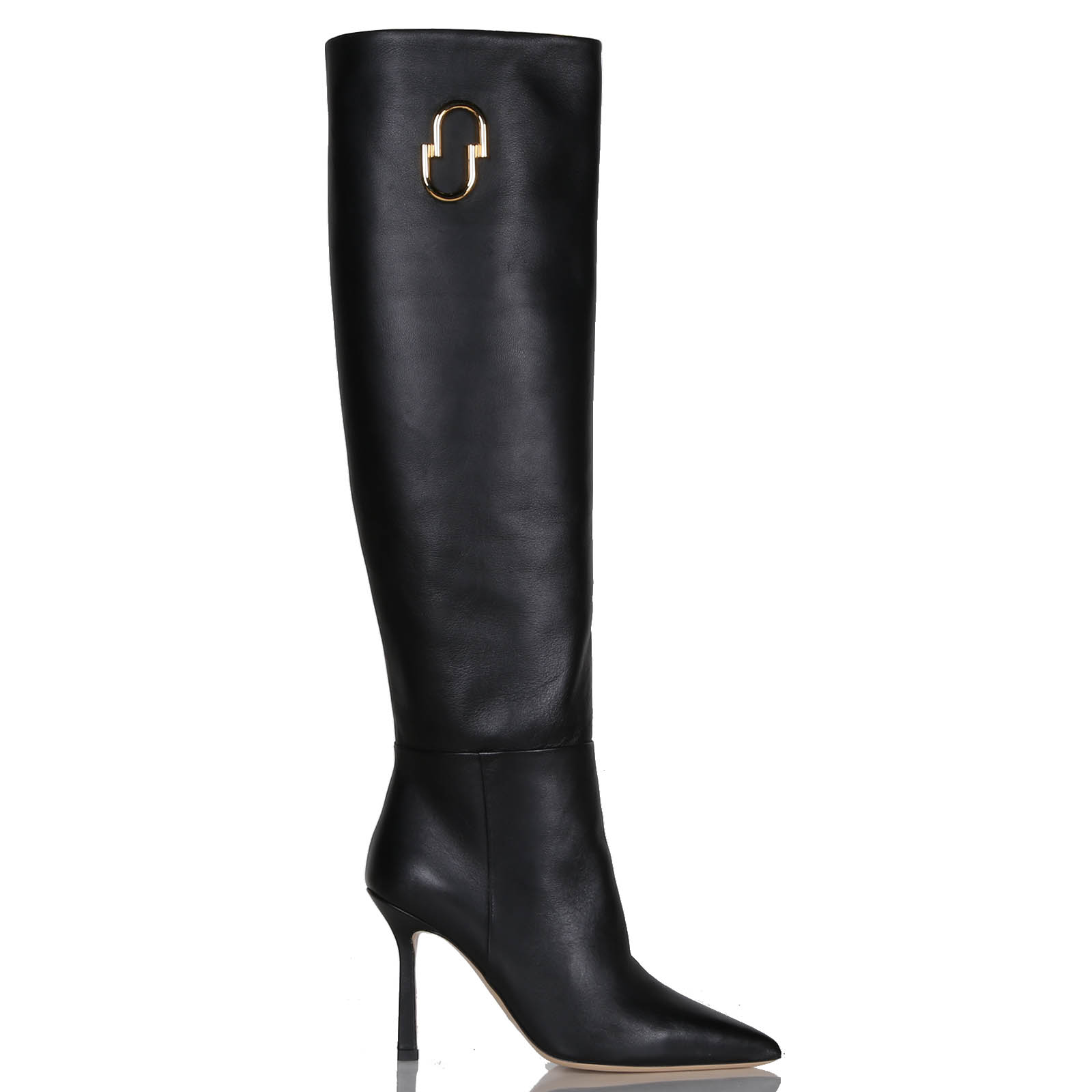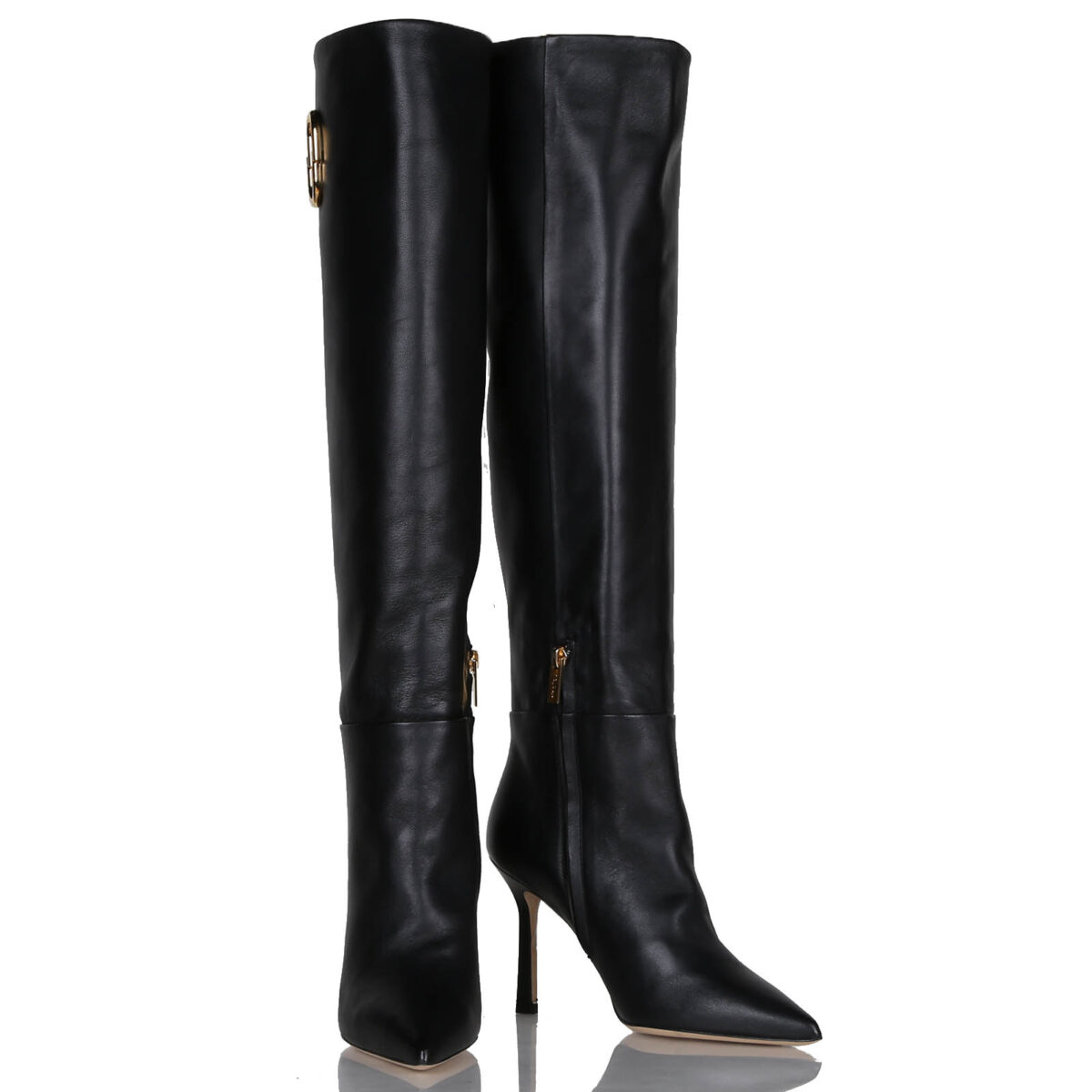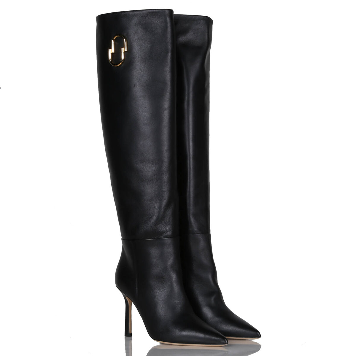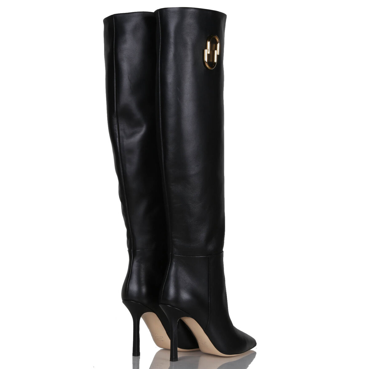 STIVALE IN NAPPA CON ACCESSORIO MODA. SUOLA IN CUOIO. ALTEZZA GAMBALE: 47 CM. TACCO 9 CM.